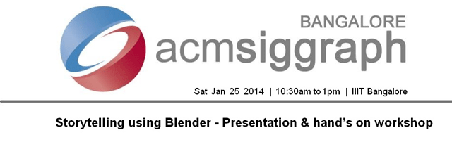 hniques, Bangalore ACM SIGGRAPH, has announced a session on Storytelling using Blender – Presentation & hand’s on workshop by Satish Goda, a Junior Software Engineer and Senior Educator at Rhythm & Hues Studios.