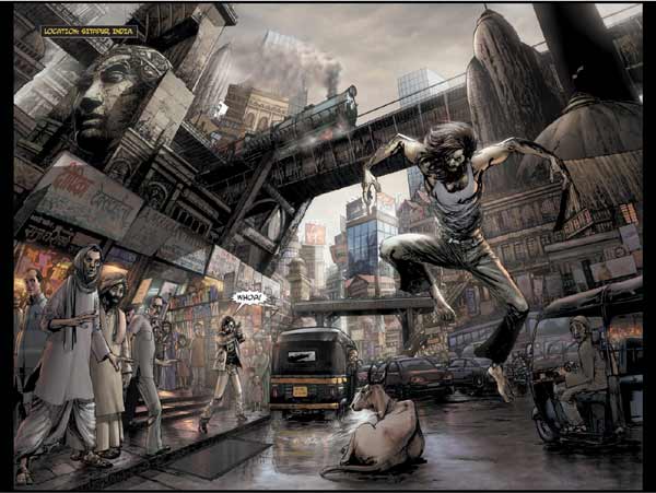 We have a great creative core team here. Our process here is that different people like me, Shekhar and any other artists working here come up with their ideas and then there are a lot of brain storming sessions. We share our stories with each other and they gradually evolve. We’ve got a constantly growing pool of story ideas at Virgin and we have people who come up with concepts and we have writers who then write scripts and storyboards based on these concepts. We take five sentences and turn them into five pages as a treatment. Then you got your process from there and break the treatment down and you’ve got a storyboard. We discuss how a story would flow over five issues and once we have the storyboard and the process, the artist goes about refining it with sketches and different kind of things, stating what the characters will look like and the universal setting of the story will look like. Much of it is working out the creativity in your own head.