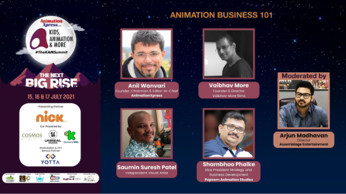 Vaibhav More Films founder and director Vaibhav More, Popcorn Animation Studios VP strategy and business development Shambhoo Phalke, independent visual artist Saumin Suresh Patel, and Animation Xpress founder, chairman, and editor-in-chief Anil Wanvari were the speakers who shared informative insights on animation business and the nitty-gritty of scaling up small-scale businesses. The panel discussion was moderated by Assemblage Entertainment director Arjun Madhavan.