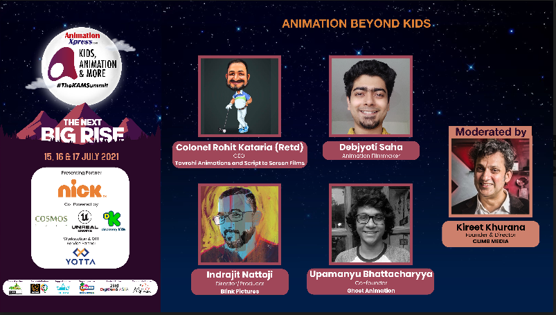 Moving on our next panel which was on ‘Animation Beyond Kids’ with speakers – Ghost Animation & Otter Studios co-founder Upamanyu Bhattacharyya, Blink Pictures director/producer Indrajit Nattoji, Tavrohi Animations and Script to Screen Films CEO Colonel Rohit Kataria (Retd), animation filmmaker Debjyoti Saha. The session was moderated by Climb Media founder and director Kireet Khurana.