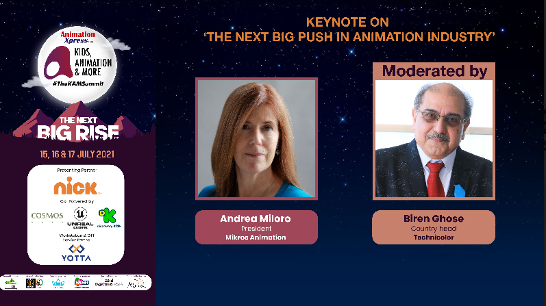 It was time for the keynote session by Mikros Animation president Andrea Miloro with Technicolor country head Biren Ghose on ‘What’s the next BIG RISE in global animation’ and how India can maximise the opportunity that the global animation industry provides in entertainment storytelling. She shared how important is it for studios to stay motivated as animation works go on for a prolonged period of time.