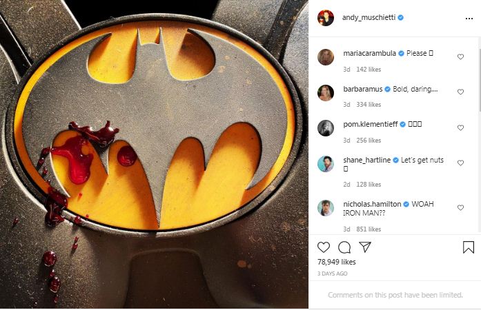 Director Andy Muschietti has recently shared a new caption free image teasing the Batman suit covered with blood, depicting the return of Michael Keaton to play Batman alongside Ezra Miller in Warner Bros. upcoming feature The Flash.