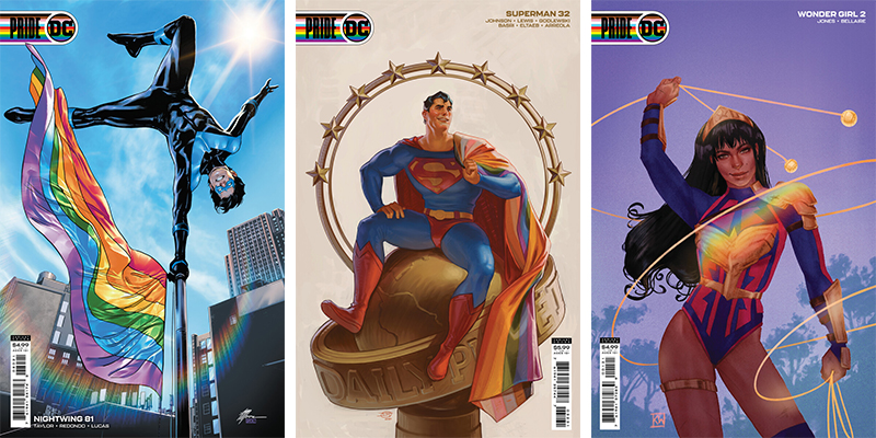 The Pride themed variant covers showcasing DC’s leading characters through the month of June include: