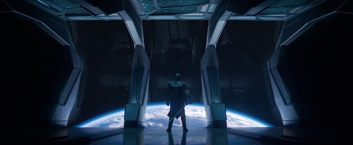 “We also chose to dress Ronan’s specific ship with a pattern based on meteoric iron in the Kree teal color. Once we started blocking in shots the need for Ronan to have a more recognizable silhouette came up so we did an overall twist of the wing tips that also nudged it a little toward the shape of the GOTG ship. Making unique alien ships is harder than you think, but the approach to this one was very rewarding and ended up one of my favorite ships I’ve seen.”