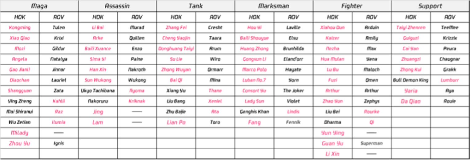 Arena of Valor Asian Games Version Hero List
