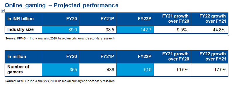 - Between year 2020 and 2022 gaming sector will witness growth in revenue at 45 per cent CAGR from Rs 90 Billion to Rs 143 billion.