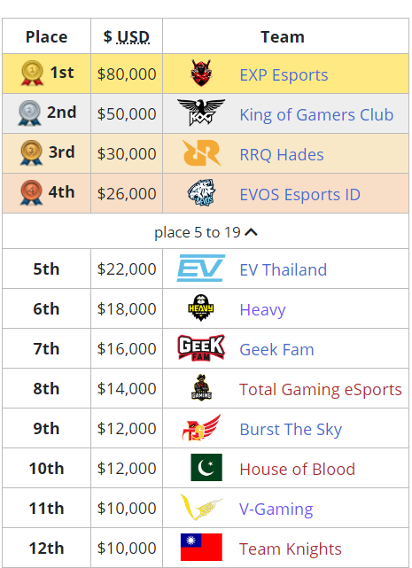 The Thai-team managed to beat them today, though, finishing at the top of the rankings table with 161 points and 41 kills. King of Gamers Club came in the second position with 160 points and 40 kills.