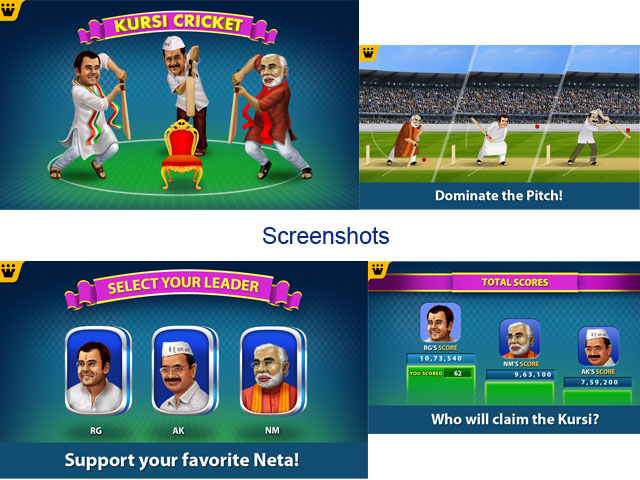We believe that Politics and Politicians are ready for gamification (making games around serious topics) and this is our humble contribution. We are not serving any ads in the game and not charging for any in-app items. This is a pro-bono effort to make Indian voters aware of their voting rights and to encourage them to vote (play) for their preferred politician. We hope the politicians involved appreciate our effort and encourage their supporters to play & demonstrate their popularity! Kursi Cricket is available online on games2win.com and also on the Android Play Store currently.