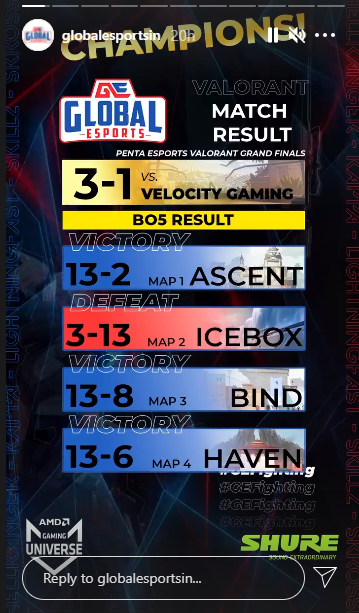 Here is what Global Esports shared post-winning on their official Instagram stories: