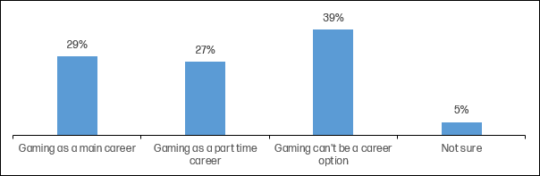 The growth of the gaming industry in India is also helping Indian gamers to try their hand at various career options. While becoming a gamer remains the most preferred, other options like becoming an influencer or a gaming software developer also interest them.