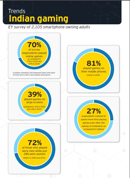 - Esports and casual gaming grew by 32 per cent in 2021. 94 per cent of the casual gamers in India were mobile gamers.