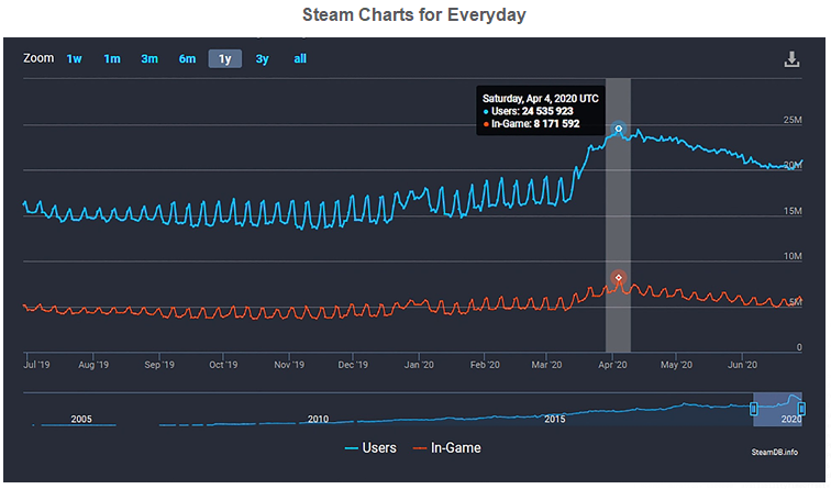 In April, Steam reported a record-setting day, shortly after the previous record was set in March. On 4 April, 24 million players were online, with 8 million of them in-game at the time the record was set. In fact, if you look at the Steam metrics in Figure 1, you can see that Q1 2020 — when most of the pandemic-based lockdowns took place — included steady increases in gamer interaction and consistent play times. This was the reason which has spiked the rate of accounts being compromised .