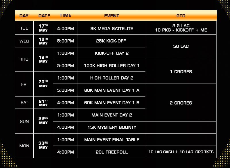 The seven days IPC live event will be held from today, 17-23 May 2022. With a prize pool of 3.5 crores GTD, this year’s IPC is a megastacks tournament with high buy-ins and high stakes.