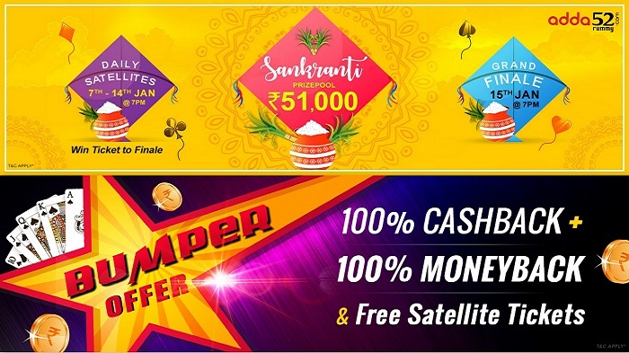 Just by making a first-time deposit, users can avail 100 per cent cashback, 100 per cent moneyback and free satellite tickets to most happening tournaments of the month which is, Sankranti tournament and Go Goa Tournament.