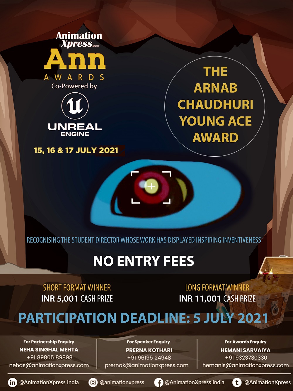 The winning student director under ‘The Arnab Chaudhuri Young Ace Award – Short Form content’ will be awarded with a cash prize of Rs 15,001 and the winner of ‘The Arnab Chaudhuri Young Ace Award – Long fort Form content’ will be awarded with Rs 33,001. The cash prize is a joint contribution from Ashima Avasthi, Vaibhav Studios and AnimationXpress. The winners will also receive a digital tablet from our support partner HUION.