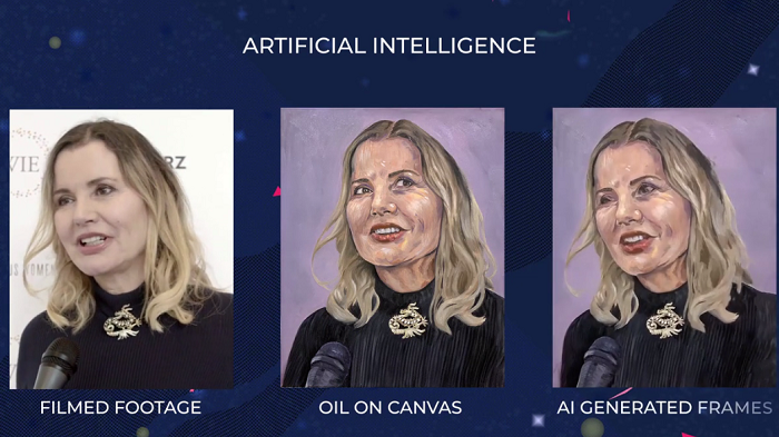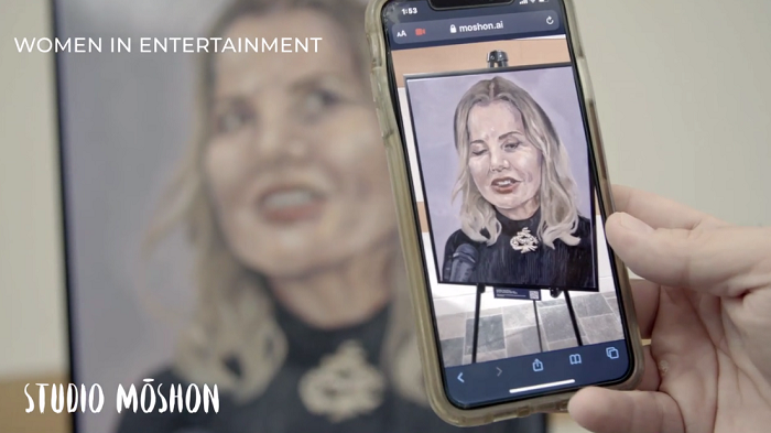 Each portrait can transform the flat portrait into a living AR experience via Instagram. Powered by artificial intelligence, Studio Moshon’s offering marries cutting edge technology with traditional fine art, creating oil painted portraits celebrating inspirational women in entertainment and sharing their stories through AI and AR technology.