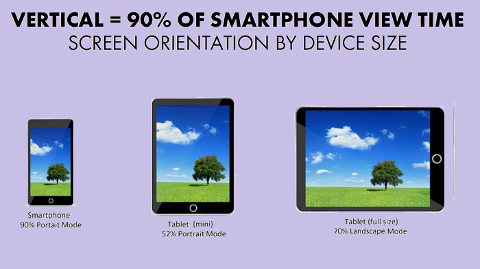 Today, the vast majority of content captured on smartphones is recorded vertically. 94 per cent of the time, phones are held vertically according to a research by Mobile Overview Report.