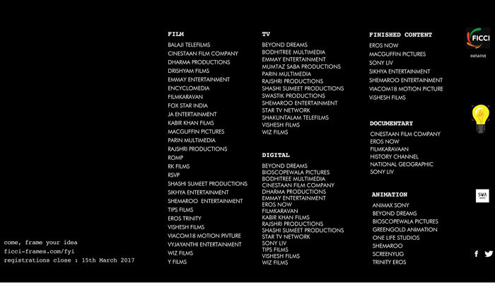 “Frame Your Idea is a unique platform that interfaces young talent and bright idea with producers, broadcasters and content buyers on an unprecedented scale. I would urge all the creators, illustrators, writers and storytellers to come and pitch your next big idea at Frame Your Idea at FICCI FRAMES 2017,” said FICCI AVGC Forum, co-chairman, Munjal Shroff.