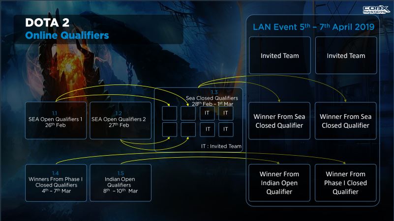 The structure will be the same for Dota 2 and CS:GO. The dates for the qualifiers are givebelow.2 SEA open qualifiers: