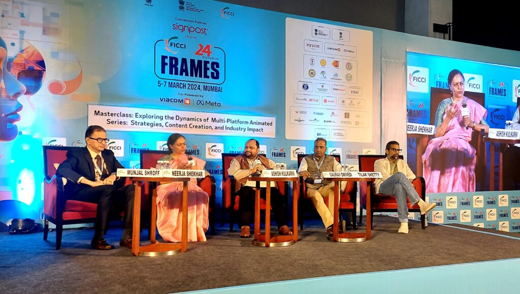 In an enlightening session Masterclass: Exploring the Dynamics of Multi-Platform Animated Series: Strategies, Content Creation, and Industry Impact, Graphiti Studios director and COO Munjal Shroff and director and chief executive officer Tilak Shetty unraveled the behind-the-scenes magic that went into the making of the animated series Krish, Trish, and Baltiboy – Bharat Hain Hum. This series, co-produced by CBC, the Ministry of Information & Broadcasting, and Graphiti Studios, took the storytelling realm by storm with its vivid portrayal of unsung heroes of the Indian freedom struggle. The other speakers of the session were Prasar Bharati chief executive officer Gaurav Dwivedi, and GOI Ministry of Information and Broadcasting additional secretary Neerja Sekhar. The panel was moderated by FICCI AVGC-XR Forum chair and Punnaryug Artvision founder Ashish Kulkarni.