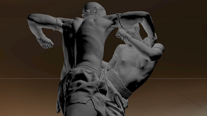 With the release of its Statue project, London-based creative studio Saddington Baynes has created a frozen moment of a Muay Thai battle, utilising full-body 3D photo scans created in partnership with body-scanning experts FBFX.