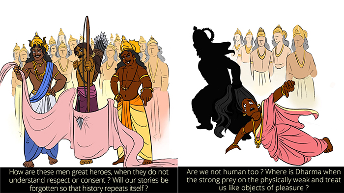 In the current environment of hate and violence, Ram’s team felt it was necessary to explain and bring to light some older and forgotten stories. The comic shows few scenes from our epics, Mahabharata and Ramayana, where the consent or respect of women didn’t matter. The comic says, “Will our stories be forgotten so that history repeats itself?” But that is the situation today. The stories are indeed forgotten.