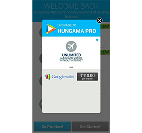 | Subscribe and Download | Consumers can subscribe to the PRO service either via Google Wallet, at a flat fee of Rs. 110 per month or subscribe to customised packages for a day, week or month using the operator billing option |