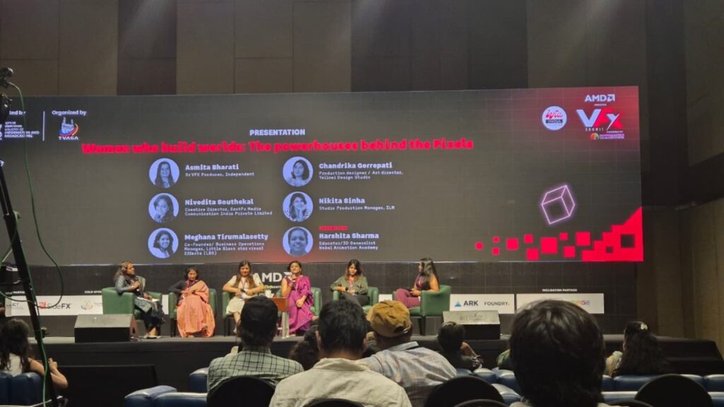 One of the most engaging panels of the day was Women Who Build Worlds: The Powerhouses Behind the Pixels, moderated by WIA educator and creative mentor Harshita Sharma. The session featured independent senior VFX producer Asmita Bharati, Yellow Design Studio production designer/art director Chandrika Gorrepati, EastFX Media Communication India creative head Nivedita Southekal, ILM studio production manager Nikita Sinha and Little Black Star Visual Effects (LBS) co-founder/business operations manager Meghana Tirumalasetty. The discussion celebrated the contributions of women in visual effects and production design, spotlighting their leadership and creative vision.