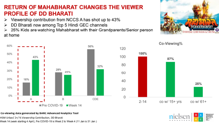 Mahabharata retelecast on DD Bharti too has been no exception in attracting a humongous audience across different age groups, of whom 25 per cent were kids who co-viewed the classic along with older family members at home.
