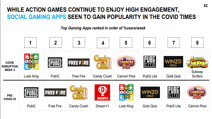 It is however clear, that even though the numbers during the lockdown will erode as restrictions and movements are eased, more than a month of lockdown time is also habit forming for many users and it can be expected that post lockdown the new normal will be much higher than before in terms of number of users who will still continue to be engaged with games.