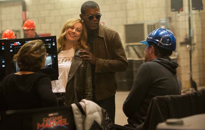 Brie Larson, Samuel L. Jackson on the sets of ‘Captain Marvel’ (Source : Marvel)