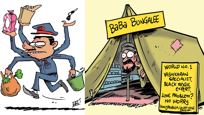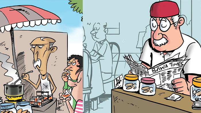Volume three puts into the spotlight our very old and beloved Irani cafe owners, with a sweet smile on face and a decent hello, these ‘bawas’ are sure on the list of superheroes and Kini portrays them in the sweetest way; a watchman, with multitasking skills, helps the residents of the society with even the household chores. The comic also gives a glimpse into another world that exists on the sides of the roads, with tents pulled up anywhere illegally, and who are not even questioned for the same, as the officers fear, they may cast a spell on them too.