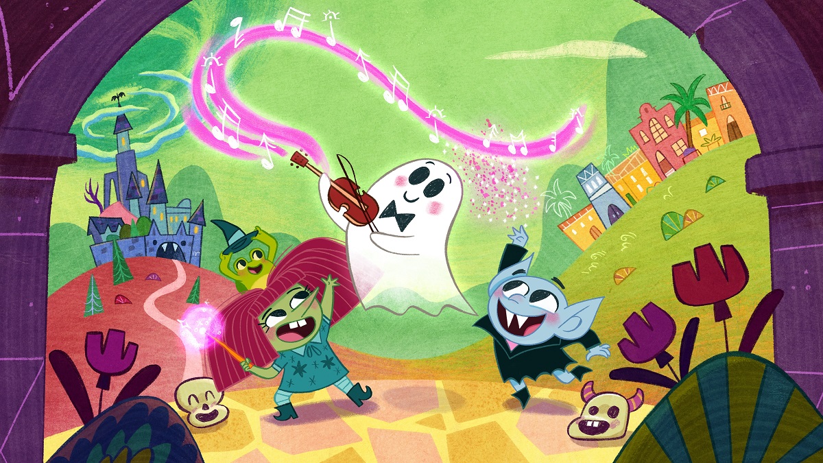 Set in the supernatural suburbs of Calavera Cove, the preschool series Gustavo (52 x 11-minute episodes) centres on the spook-tacular adventures of Gustavo the Ghost, Leila the Witch, and Vlad the Vampire—three best friends with one-of-a-kind paranormal powers that reflect their personalities. The cute-meets-creepy world of Gustavo is steeped in friendship, kindness, and humour, as the three friends navigate challenges using their own special monster talents to save the day.