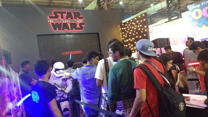 However, a similar scenario whipped up in just the adjacent booth where a mega-screen projecting the trailer of the highly anticipated Star Wars: The Last Jedi in loop, and a bunch of fanboys (and girls) posing in the famous Star Wars hoodie and wielding the legendary laser sword, turn by turn. And to add to the frenzy, action figures and merchandises of varying shape and sizes of the same were up for sale in one of the stalls.