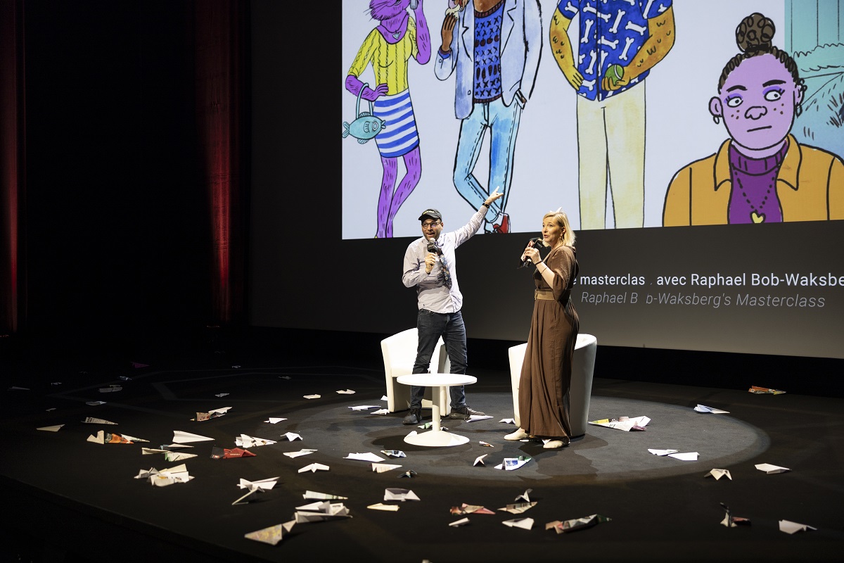 L-R: Raphael Bob-Waksberg – Long Story Short Showrunner, Writer & Executive Producer with conversation moderator, Perrine Quennesson