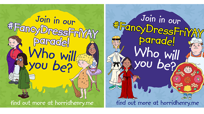 The #FancyDressFriYAY virtual parade rounds out Novel Entertainment’s Horrid Henry half term activity week which has included dressing up with the stars alongside interviews with Great British Chef contender Hrishikesh Desai, super teacher Zane Powels and Happy Hudson Sherbourne, as he completed his virtual run from Oxford to Liverpool’s Anfield Stadium.