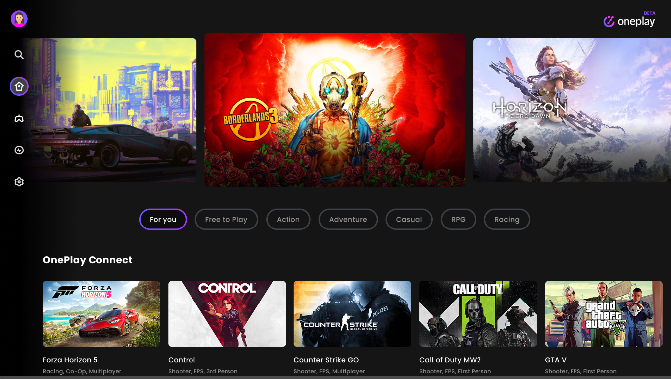 OnePlay has multiple levels of game titles available including AAA Titles and AA titles for users.