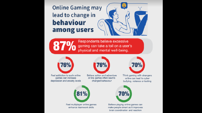 - 87 per cent of respondents believe that gaming takes a toll on their physical and mental well-being.