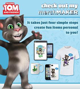 The Talking Tom and Friends MerchMAKER launches on 27 August 2014 and will allow fans to create their own bespoke Talking Tom and Friends merchandise using MerchANT’s groundbreaking interactive personalization system. Users in the UK and Ireland will be able to choose from a wide range of apparel and accessories to customize with their favorite character images and quotes.