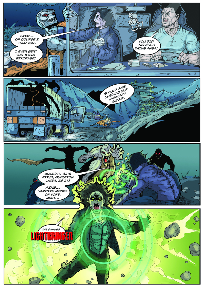 The year is 2020 and the mysterious and enigmatic duo of Anga and Morphuz are hurtling down towards the Indo-China border in their desi truck. Not much is known about their origins or their intentions, save the fact that Anga has in his possession the Blue Lotus Crystal and both of them are meta-humans with very high levels of powers. Some say Anga and Morphuz are old gods – that cannot be confirmed. What is known is that Morphuz has a pretty bad credit rating.