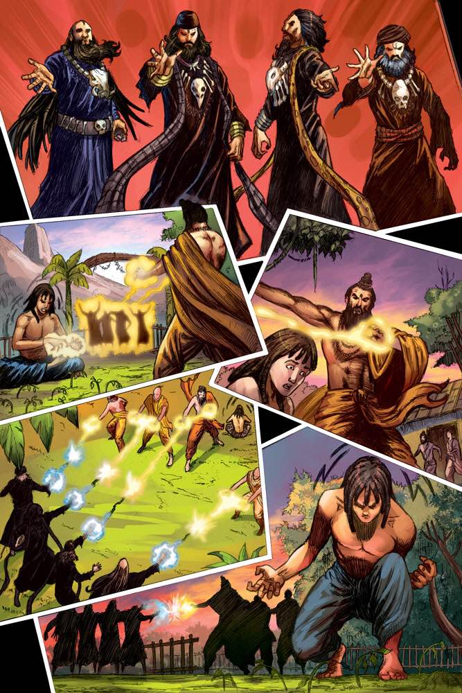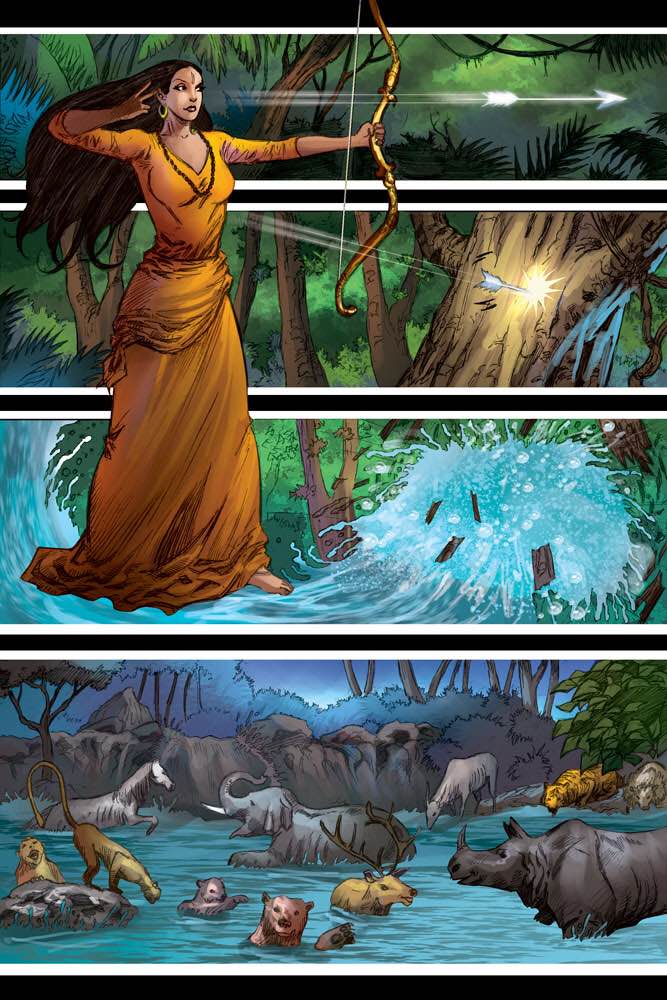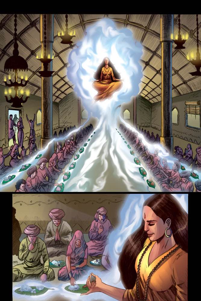 This one hundred page Mytho/Ancient Historical epic collects three Legendary tales of the Super Goddess. As Durga she is called to fight Mahishasura who has taken over Earth and Swarga, rendering all Devas powerless. As Vaishno Devi she must survive a heart wrenching chase through deep, dark forests from the black magician Bhairav Nath who intends to conquer her very soul. As Chandi she is trapped in the clutches of an army of Asuras headed by Sumbha and Nisumbha who use strategy, deception and surprise to end Shakti once and for all.
