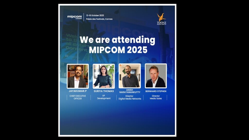 The Toonz delegation at Mipcom 2025 will be led by Jayakumar, alongside media sales director Bernhard Stephan, development vice president Suriya Thomas and digital media networks & distribution director Anish Narayanakutty.