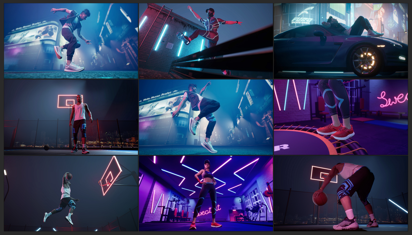 Breaking down how they went about creating assets for the ad-film, he shared, “The video had to look realistic, for that we carefully chose our camera lenses and movements for each shot.. most of the shots were rendered with wide lenses and low angles to frame the shoes properly. We also used neon elements to light our environments to give it a very stylised and futuristic look.”