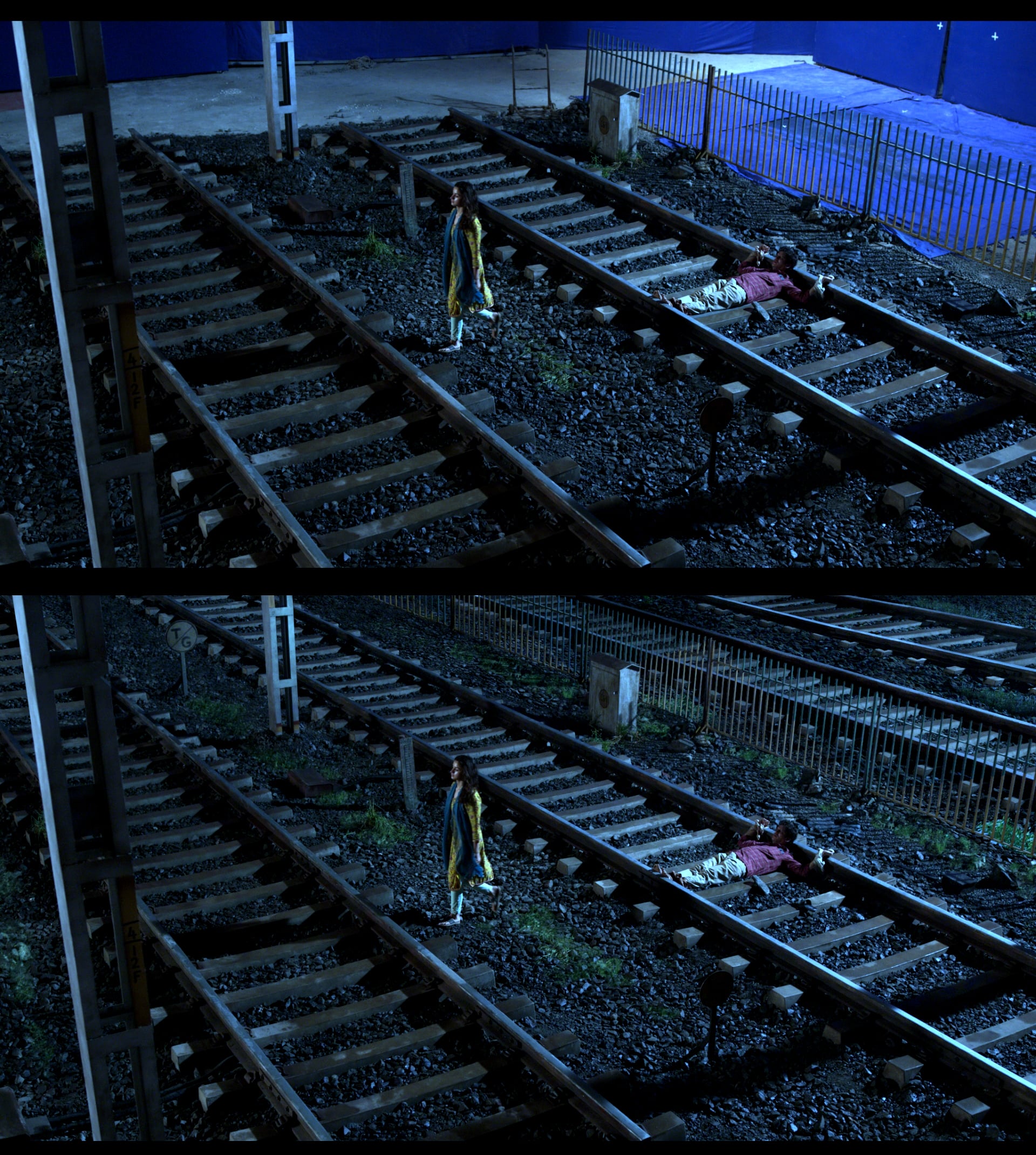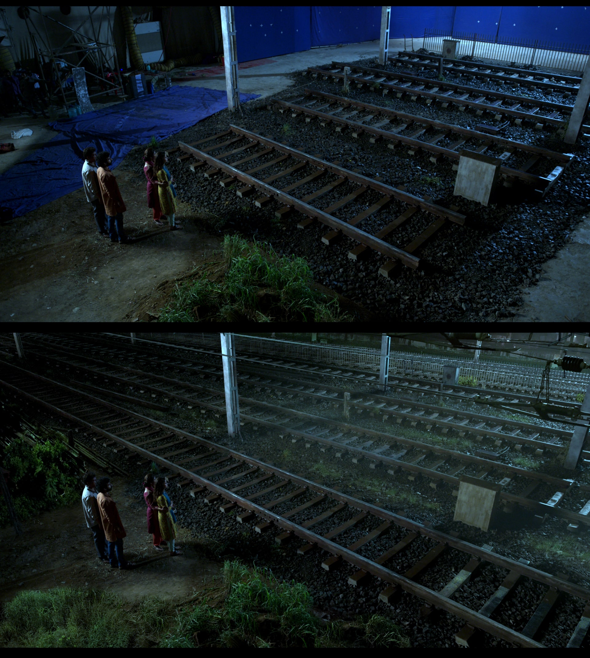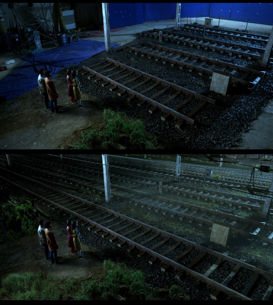 The entire production process spanned three months, with FutureWorks developing concept art based on the storyline and storyboards of the necessary shots, provided by the assistant director. The finalised composition was then produced, based on the concept art, including the camera axes and magnification for each shot. Reference shots were captured at the real location to understand the lighting of a real railway track, while multiple photos were taken for the VFX work. These were used to help create the final Digital Matte Painting (DMP) backgrounds to be used in some of the shots. “We used the same techniques to paint out the sky and ground, which helped give our shots a sense of depth,” said Chuphal.
