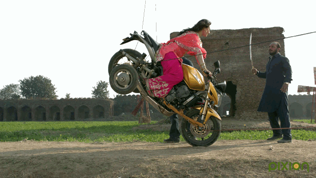 Another noted and challenging shot for the Pixion Team was the Prologue Shot, which took around 10 days to complete. The Director wanted Pixion to give a proper depth in the overall scene. Apart from the characters in this shot, each element was digitally created starting from the background layer, blood squirts, the cornfield, a sickle and wooden Axe. The sequence was shot at a fast speed and hence the compositors had to stitch together various plates of the actors shots and then forward to the CGI team. Initially wind was to be used in the prologue shot, but it was then struck out.
