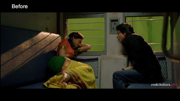 Gradual transitions of journey progressing through the day made the train sequences more exciting, which were completely shot against green screen in a studio.