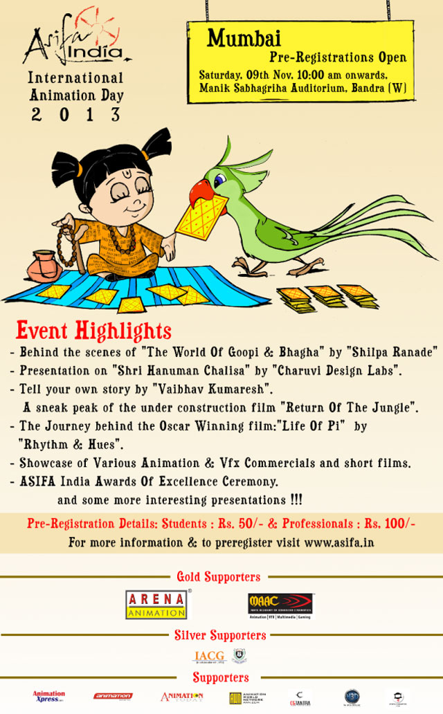 Animation and VFX enthusiasts, gear up to celebrate the spirit of Indian Animation as ASIFA India’s International Animation Day (IAD) 2013, slated for 9th November at Bandra in Mumbai, is all set with an amazing line up.
