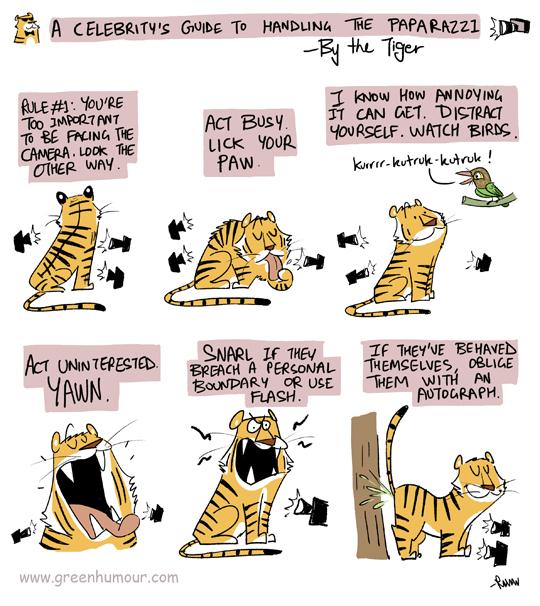 There are various people who inspired me. Lot of my cartooning and my humour is directly influenced by Bill Watterson (American cartoonist) and Gary Larson (American cartoonist) and a lot of drawing style has been influenced by Genndy Tartakovsky (Dexter’s Laboratory). All kinds of art forms inspire me; not only in cartoons but also in film. It is an amalgamation of various kinds of art forms that finds their inspiration and influence into my work.