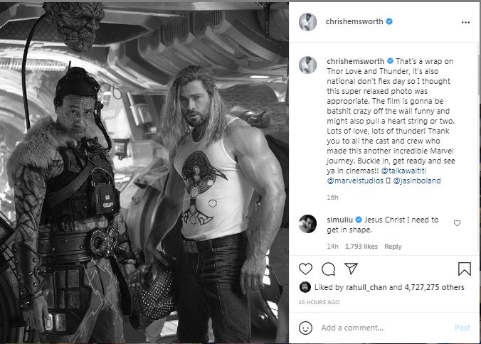 The filming of Disney/Marvel’s upcoming Thor: Love and Thunder has finally come to an end. The God of Thunder himself, Chris Hemsworth, announced it on Tuesday in his Instagram post.