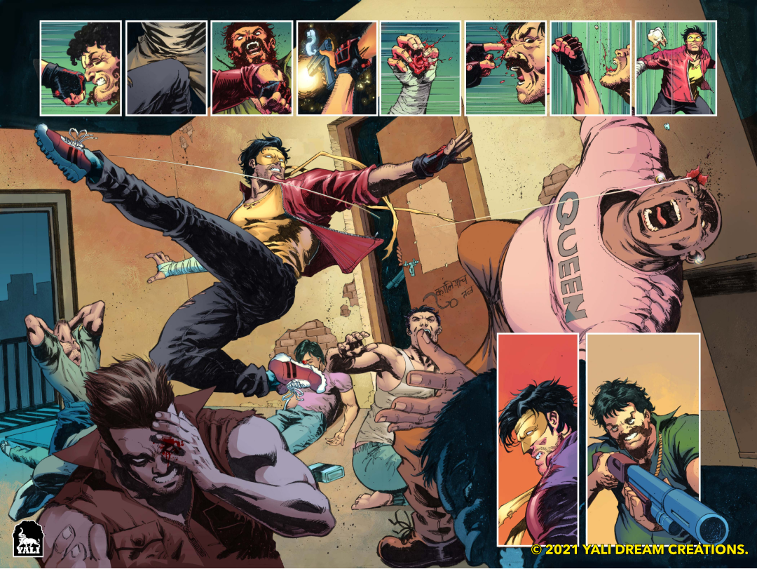 AnimationXpress got in touch with Yali Dream Creations CEO, co-founder, and creator Asvin Srivatsangam to get to know more about their recently launched comic book Codename Alpha. On asking about what the readers can expect from Codename Alpha, how this superhero stands out from other early existing superheroes, Srivatsangam mentioned, “Codename Alpha is an experiment, unlike anything we’ve attempted before. When we started on this endeavour, we had a daunting goal – to create a uniquely Indian, whacky superhero that stands out from the existing crop of characters out there. One that eschews the crutch of Indian mythology/folklore in favour of the modern history of Mumbai. Codename Alpha can be described as the whistle-worthy, kapda-phaad-worthy 90s Bollywood take on the superhero genre with modern action-film sensibilities. It is Deadpool meets Om Shanti Om meets Judwaa – the self-aware, irreverent, foul-mouthed lovechild of the Russo Brothers and Rohit Shetty.”